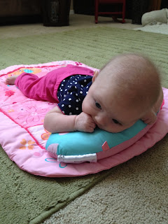 It seems like each kiddo grows up faster than the last, or maybe its just me I dont know. This girl is on her belly & loving it. She's so close to rolling over in both directions and can almost hold her bottle. Today she is 3 months and 4 days. I am a little behind and need to take her 3 month photos.
